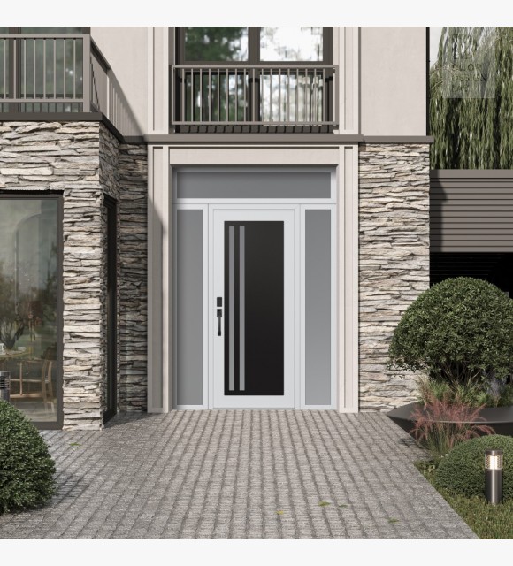 The double-chamber glazing combined with polystyrene insulation reduces heat loss by 40-50% compared to conventional exterior doors: