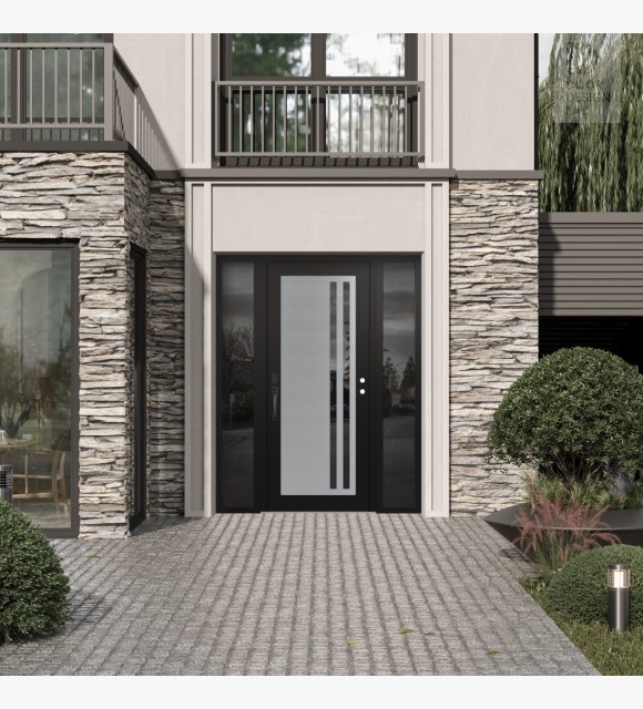 The double-chamber glazing combined with polystyrene insulation reduces heat loss by 40-50% compared to conventional exterior doors: