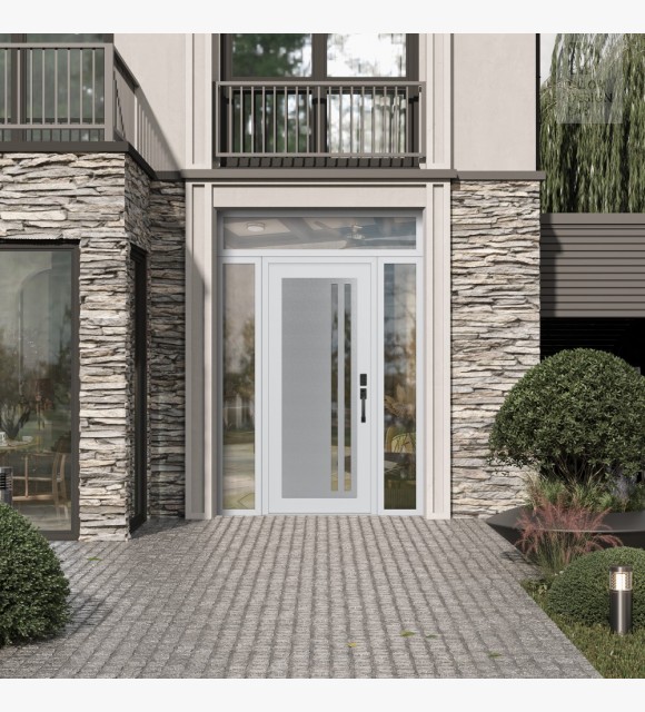 The double-chamber glazing combined with polystyrene insulation reduces heat loss by 40-50% compared to conventional exterior doors: