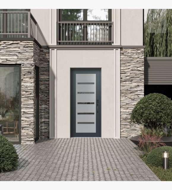 Modern Steel Front Door Diamond C7 36" x 80" anthracite/anthracite mirrored Glass Panel stainless steel LHI