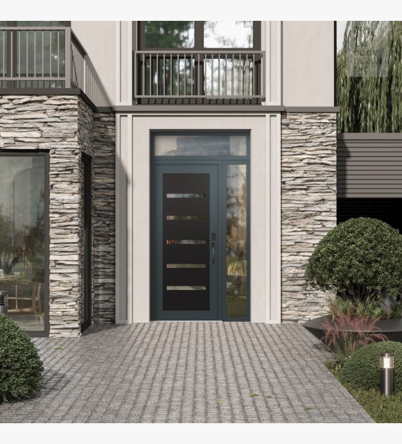 Modern Steel Front Door Diamond C7 48" x 96" anthracite/anthracite clear Glass Panel black LHI with Sidelite and Transom clear Glass