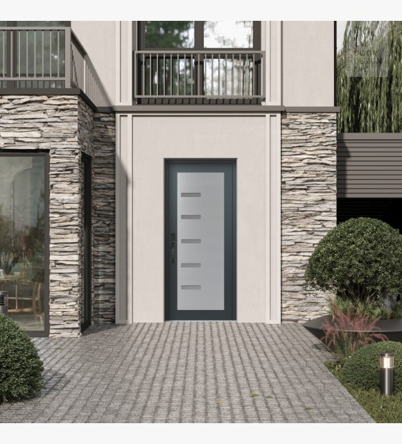Modern Steel Front Door Diamond C8 36" x 80" anthracite/anthracite frosted Glass Panel stainless steel RHI