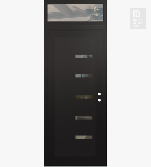 Modern Steel Front Door Diamond C8 36" x 96" black/black clear Glass Panel black LHI with Transom clear Glass