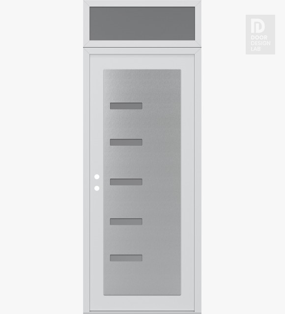 Modern Steel Front Door Diamond C8 36" x 96" white/white frosted Glass Panel stainless steel RHI with Transom frosted Glass