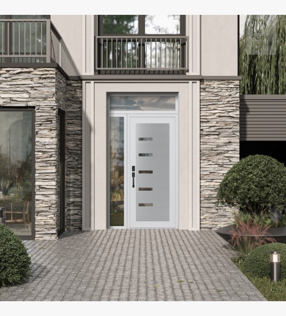 The double-chamber glazing combined with polystyrene insulation reduces heat loss by 40-50% compared to conventional exterior doors: