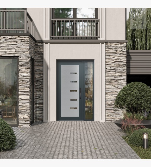 Modern Steel Front Door Diamond C8 52" x 80" anthracite/anthracite clear Glass Panel stainless steel LHI with Sidelite clear Glass