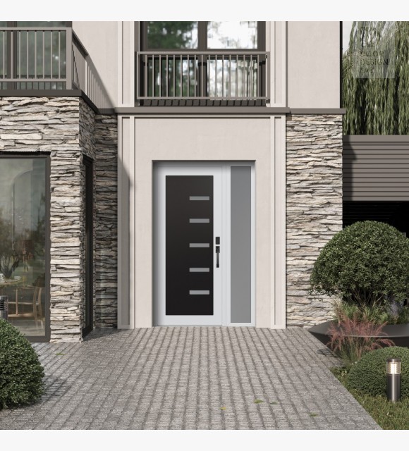 The double-chamber glazing combined with polystyrene insulation reduces heat loss by 40-50% compared to conventional exterior doors: