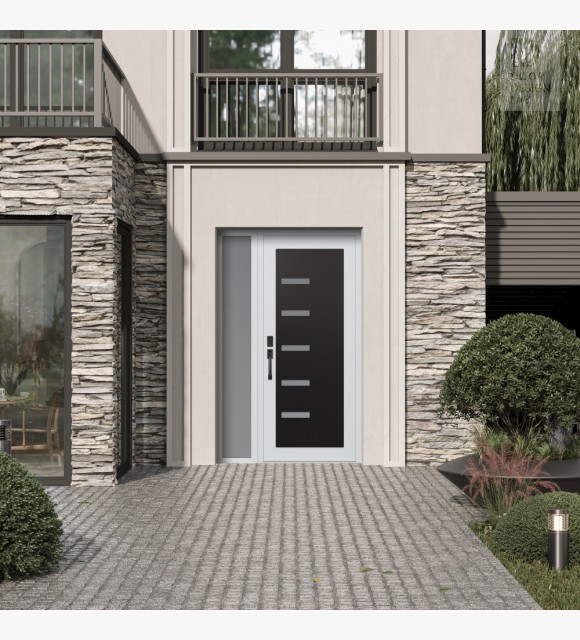 The double-chamber glazing combined with polystyrene insulation reduces heat loss by 40-50% compared to conventional exterior doors: