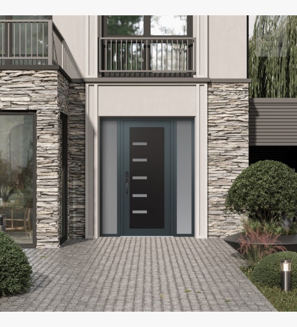 Modern Steel Front Door Diamond C8 60" x 80" anthracite/anthracite frosted Glass Panel black RHI with 2 Sidelites frosted Glass