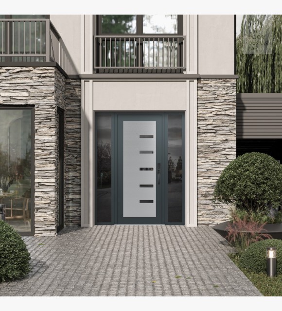 Modern Steel Front Door Diamond C8 60" x 80" anthracite/anthracite mirrored Glass Panel stainless steel LHI with 2 Sidelites mirrored Glass