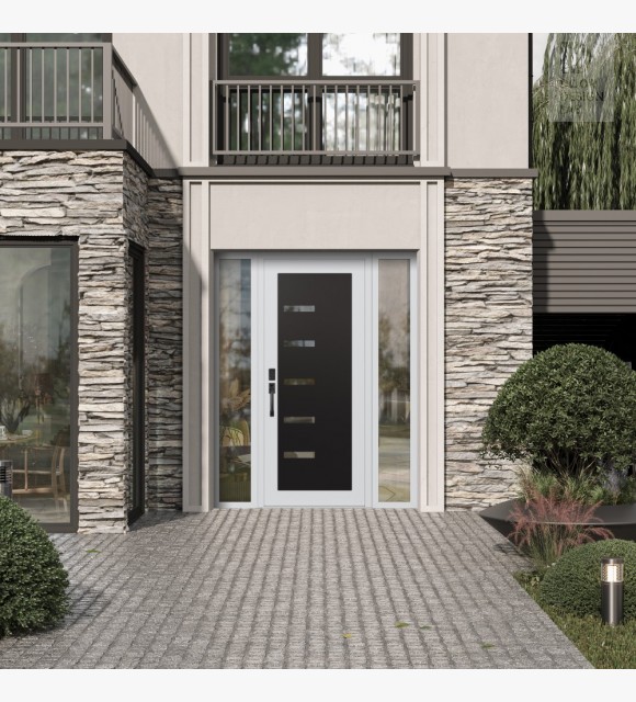 The double-chamber glazing combined with polystyrene insulation reduces heat loss by 40-50% compared to conventional exterior doors: