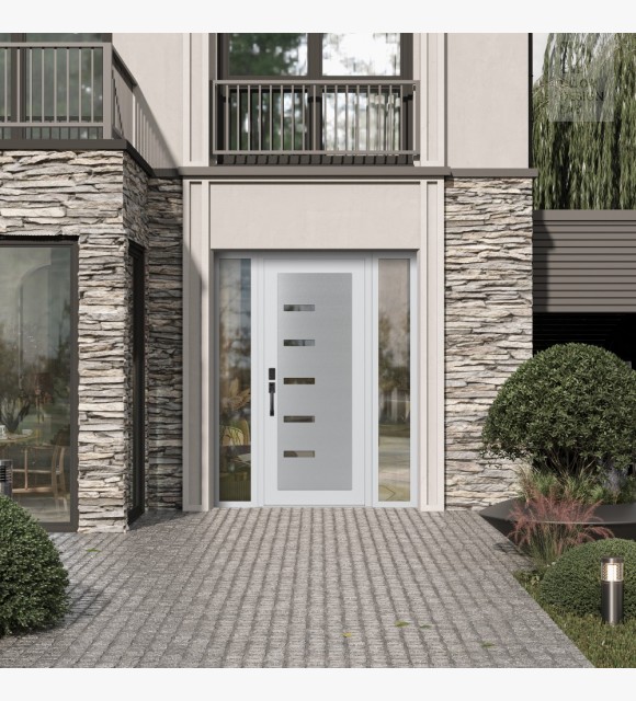 The double-chamber glazing combined with polystyrene insulation reduces heat loss by 40-50% compared to conventional exterior doors: