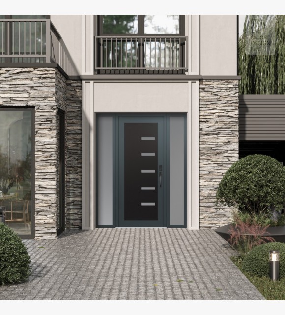 Modern Steel Front Door Diamond C8 64" x 80" anthracite/anthracite frosted Glass Panel black LHI with 2 Sidelites frosted Glass