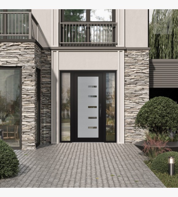 The double-chamber glazing combined with polystyrene insulation reduces heat loss by 40-50% compared to conventional exterior doors: