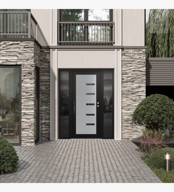 The double-chamber glazing combined with polystyrene insulation reduces heat loss by 40-50% compared to conventional exterior doors:
