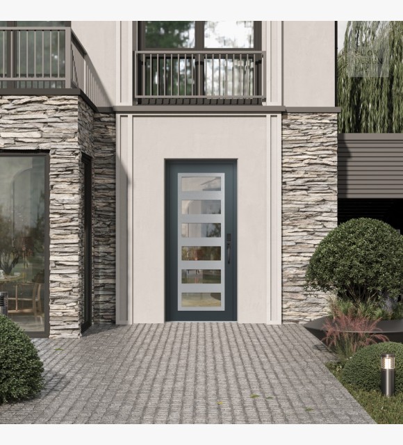 Modern Steel Front Door Diamond C9 36" x 80" anthracite/anthracite clear Glass Panel stainless steel LHI