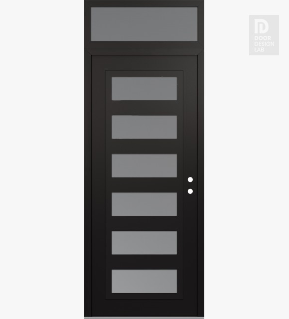 Modern Steel Front Door Diamond C9 36" x 96" black/white frosted Glass Panel black LHI with Transom frosted Glass