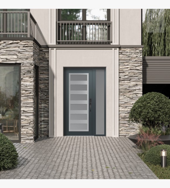 The double-chamber glazing combined with polystyrene insulation reduces heat loss by 40-50% compared to conventional exterior doors: