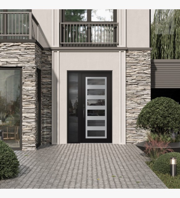 The double-chamber glazing combined with polystyrene insulation reduces heat loss by 40-50% compared to conventional exterior doors:
