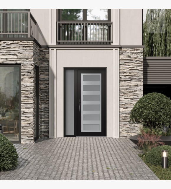 The double-chamber glazing combined with polystyrene insulation reduces heat loss by 40-50% compared to conventional exterior doors: