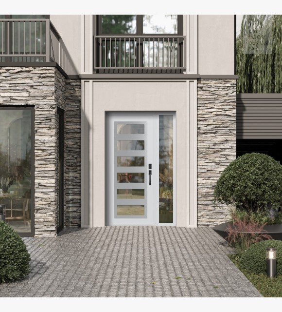 The double-chamber glazing combined with polystyrene insulation reduces heat loss by 40-50% compared to conventional exterior doors: