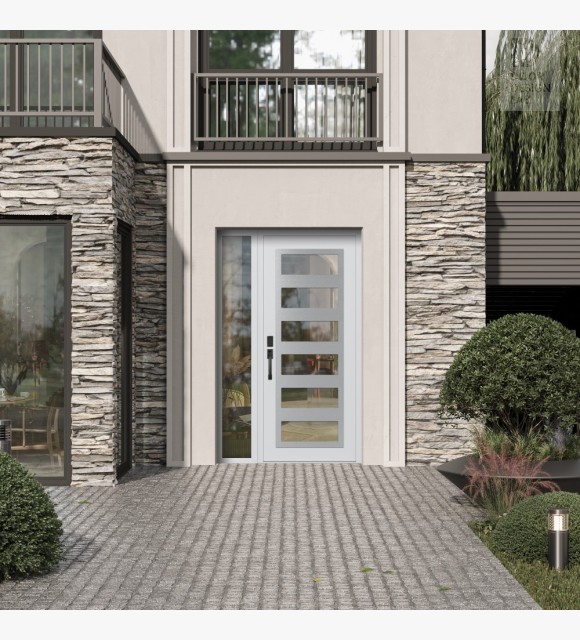The double-chamber glazing combined with polystyrene insulation reduces heat loss by 40-50% compared to conventional exterior doors: