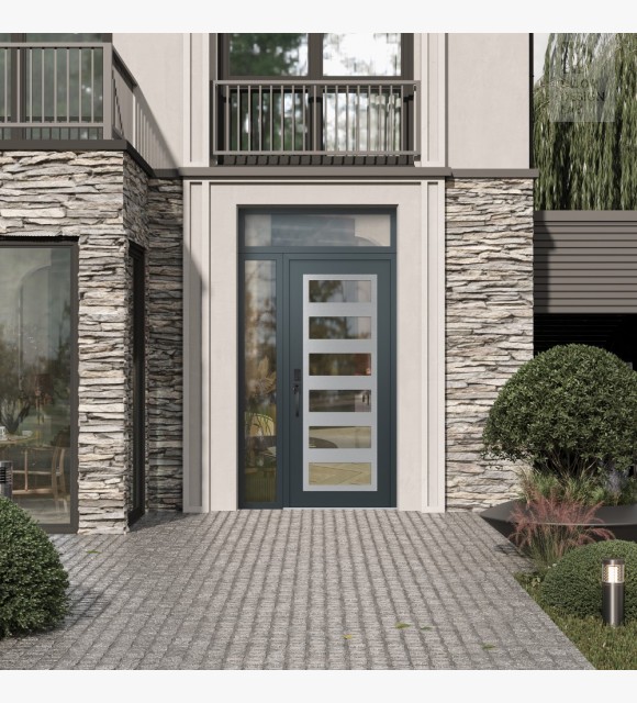 Modern Steel Front Door Diamond C9 52" x 96" anthracite/anthracite clear Glass Panel stainless steel RHI with Sidelite and Transom clear Glass