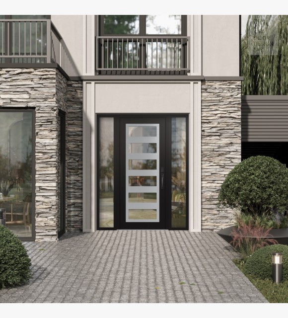 The double-chamber glazing combined with polystyrene insulation reduces heat loss by 40-50% compared to conventional exterior doors:
