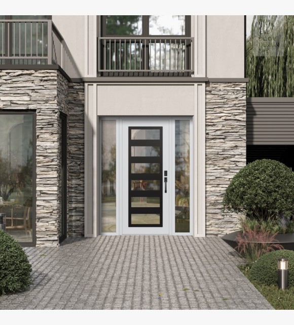 The double-chamber glazing combined with polystyrene insulation reduces heat loss by 40-50% compared to conventional exterior doors: