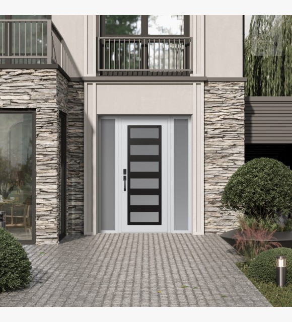 The double-chamber glazing combined with polystyrene insulation reduces heat loss by 40-50% compared to conventional exterior doors:
