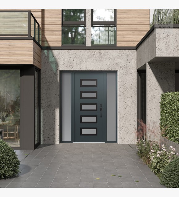 Modern Steel Front Door Diamond D1 64" x 80" anthracite/anthracite frosted Glass Panel black LHI with 2 Sidelites frosted Glass