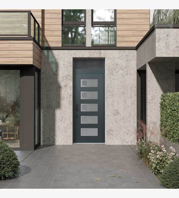 Modern Steel Front Door Diamond D2 36" x 96" anthracite/anthracite frosted Glass Panel stainless steel RHI with Transom mirrored Glass