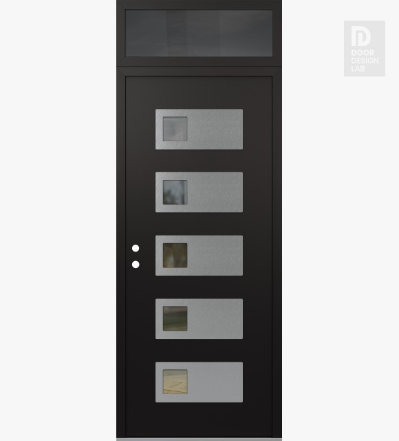 Modern Steel Front Door Diamond D2 36" x 96" black/black clear Glass Panel stainless steel RHI with Transom mirrored Glass