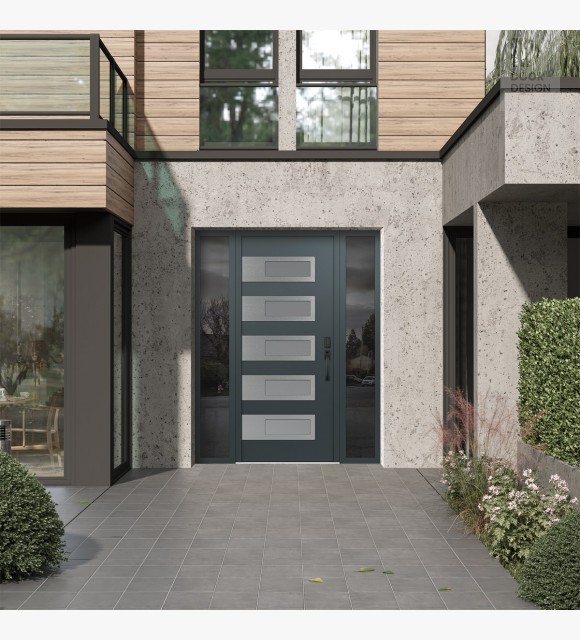 Modern Steel Front Door Diamond D3 64" x 80" anthracite/anthracite frosted Glass Panel stainless steel LHI with 2 Sidelites mirrored Glass