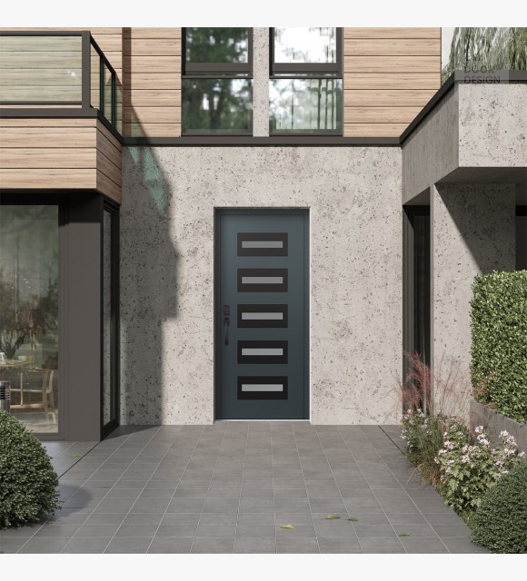 Modern Steel Front Door Diamond D4 36" x 80" anthracite/anthracite frosted Glass Panel black RHI