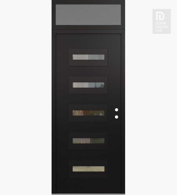 Modern Steel Front Door Diamond D4 36" x 96" black/black clear Glass Panel black LHI with Transom frosted Glass