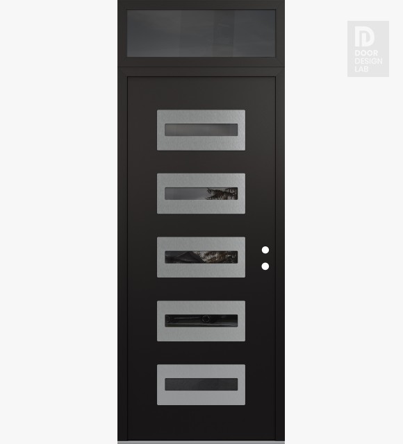 Modern Steel Front Door Diamond D4 36" x 96" black/black mirrored Glass Panel stainless steel LHI with Transom mirrored Glass