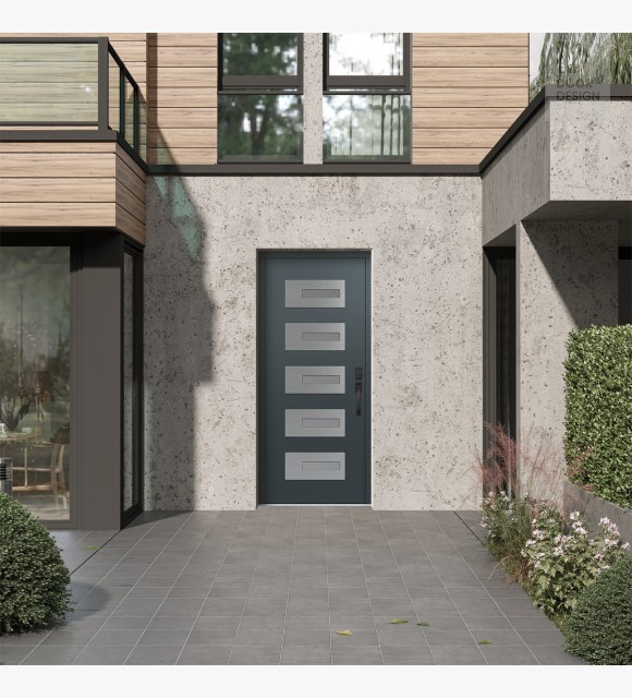 Modern Steel Front Door Diamond D6 36" x 80" anthracite/anthracite frosted Glass Panel stainless steel LHI
