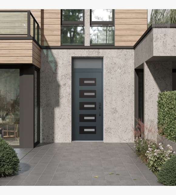 Modern Steel Front Door Diamond D6 36" x 96" anthracite/anthracite frosted Glass Panel black LHI with Transom frosted Glass