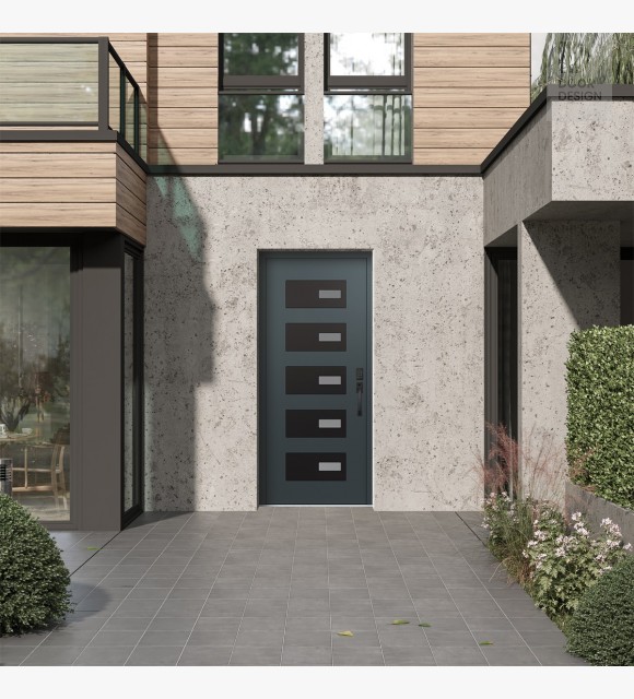 Modern Steel Front Door Diamond D7 36" x 80" anthracite/anthracite frosted Glass Panel black LHI