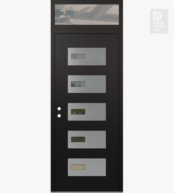Modern Steel Front Door Diamond D7 36" x 96" black/black clear Glass Panel stainless steel RHI with Transom clear Glass