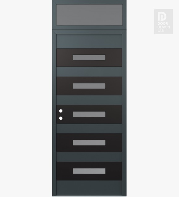 Modern Steel Front Door Diamond D9 36" x 96" anthracite/anthracite frosted Glass Panel black RHI with Transom frosted Glass