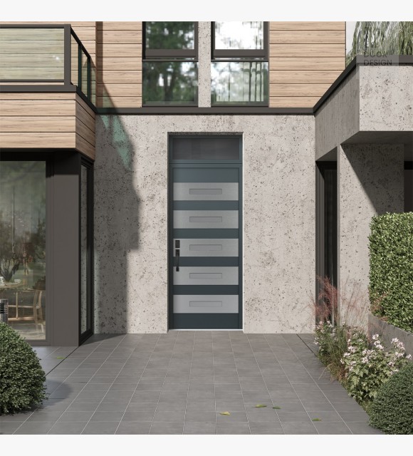 Modern Steel Front Door Diamond D9 36" x 96" anthracite/anthracite frosted Glass Panel stainless steel RHI with Transom mirrored Glass