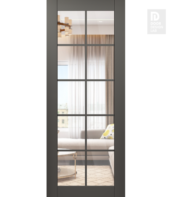 Modern Interior DOOR SLAB AVON 10 LITE CLEAR VETRO GRAY MATTE 18" X 80" X 1 3/4" TEMPERED CLEAR GLASS