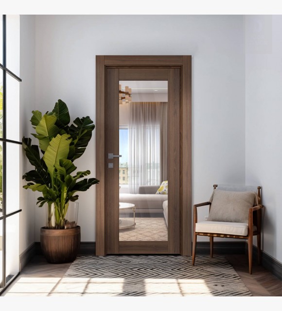 Modern Interior DOOR SLAB AVON 207 CLEAR VETRO PECAN NUTWOOD 24" X 92 1/2" X 1 3/4" TEMPERED CLEAR GLASS