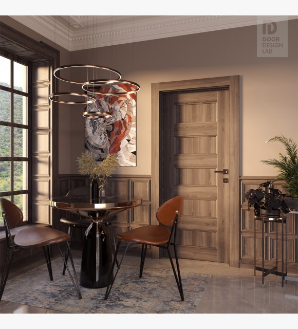 Door construction: stile and rail doors symbolize the best traditions of American craftsmanship. We use linear pieces of lumber assembled into a single structure to ensure the functionality and durability of the slab. This door with a narrow fillet features five horizontal recessed panels and four rails stacked in Shaker style.