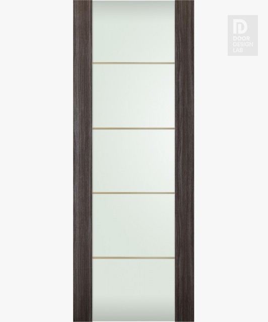 Modern Interior DOOR SLAB PALLADIO 202 4H GOLD STRIPS VETRO GRAY OAK 32" X 80" X 1 9/16" TEMPERED FROSTED GLASS