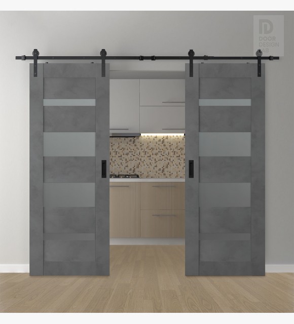 DOUBLE BARN DOOR AVON 07-01 VETRO DARK URBAN 72" X 80" X 1 3/4" BLACK HARDWARE