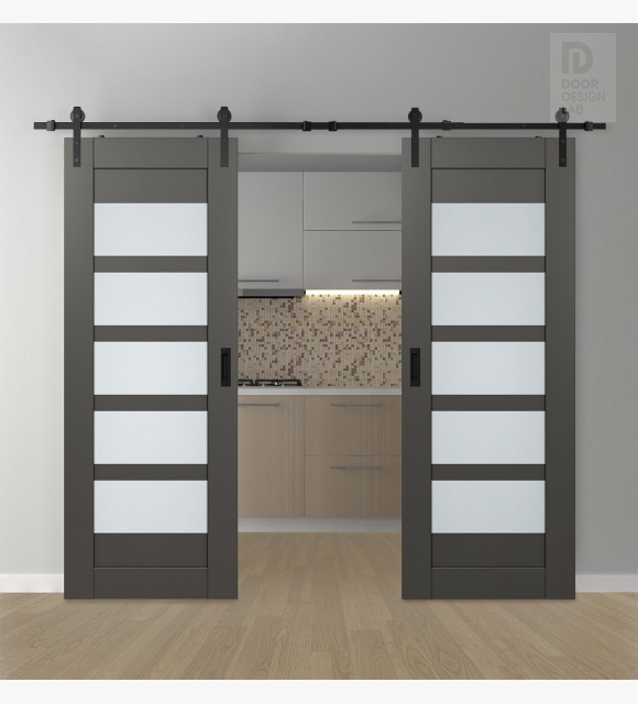 DOUBLE BARN DOOR AVON 07-07 VETRO GRAY MATTE 72" X 96" X 1 3/4" BLACK HARDWARE