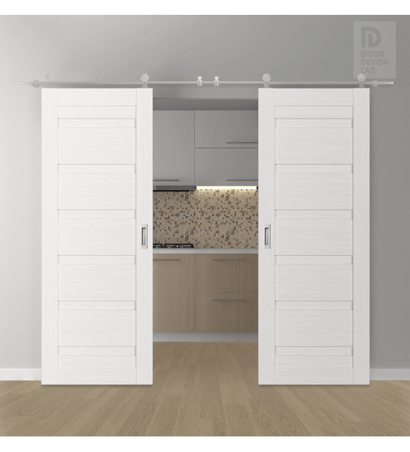 DOUBLE BARN DOOR LOUVER BIANCO NOBLE 60" X 80" X 1 3/4" STAINLESS STEEL HARDWARE